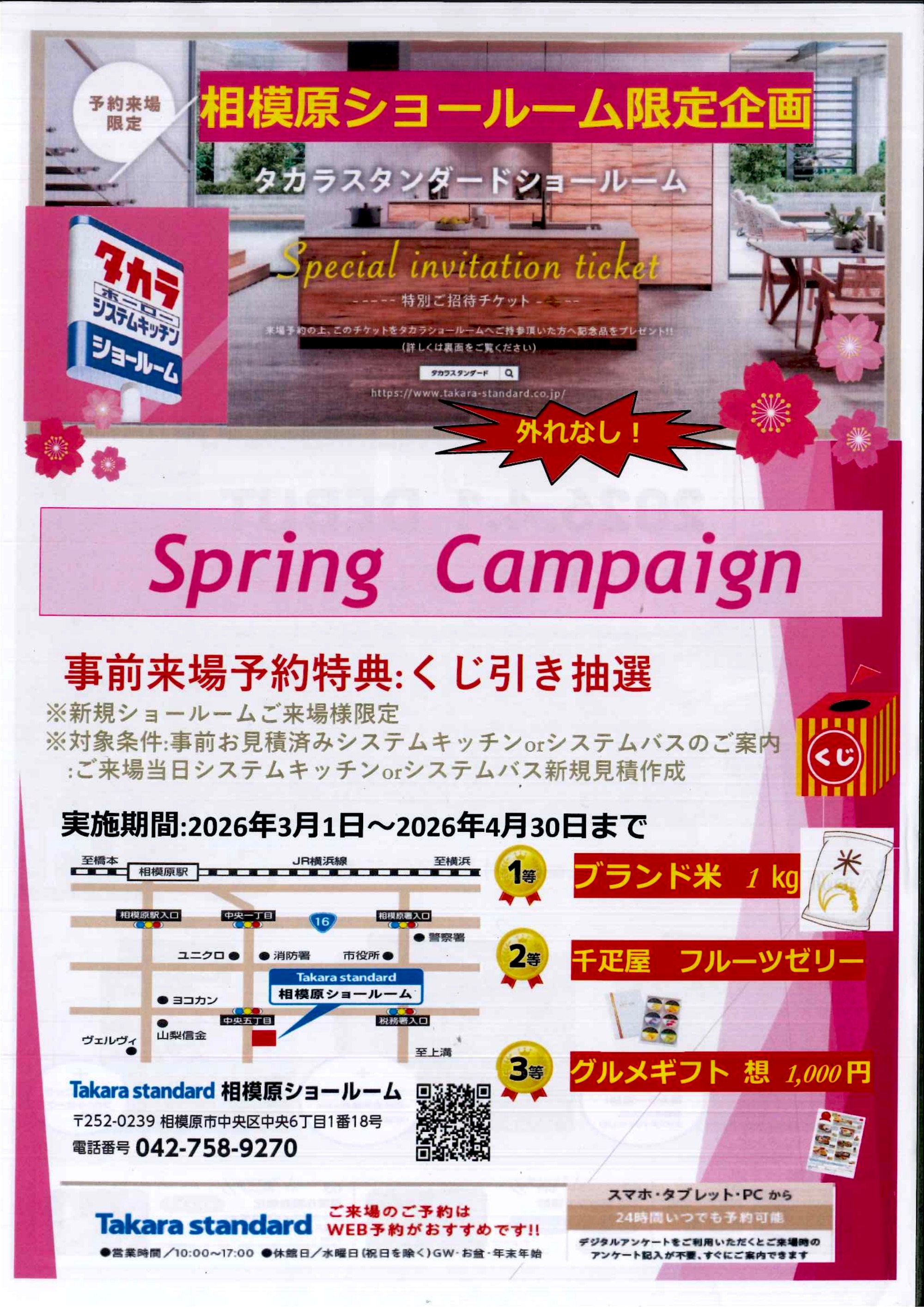 タカラスタンダード相模原ショールームに新規ご来場様限定の特別企画
