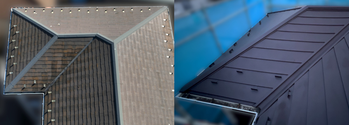 現地調査でわかった屋根の劣化の状況などを踏まえ、今回の工事では、耐久性と機能性のバランスに優れた、カバー工法のご提案をしました。
