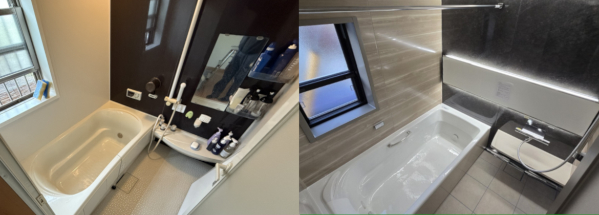 在来工法の浴室からユニットバスへリフォームをさせていただきました。既存の浴室を解体すると下地の木材が腐食していたため、しっかり補強をした上で新しいユニットバスを設置したので、建物全体の強度のアップやシロアリ被害のリスクも軽減でき、快適な浴室になったと思います。