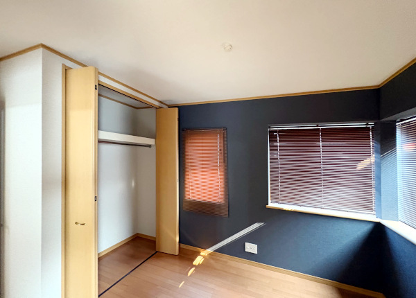 「和室を洋室にリフォームしたい」とのご相談をいただき、具体的なご要望として、畳をリビングと同じようなフローリングに変更し、引戸をより開放的で洋風なデザインにしたいという点を中心にお打ち合わせを進めました。また、押入れは天袋をなくし、可動棚のあるクローゼットに変更。玄関側の引戸も、少し明かりが入るようなデザイン性のあるものへ交換したいとのご希望でした。天井と壁は既存のまま活かしながら、空間の印象を大きく変えるプランをご提案し、施工を行いました。特に、リビングとの境に設置した折れ戸タイプの「タチカワブラインド プレイススウィング」は、お部屋を広く見せるだけでなく、光を取り入れて明るく開放的な空間を演出。お施主様にも「思っていた以上に使いやすくて明るい」と、大変ご満足いただけました。